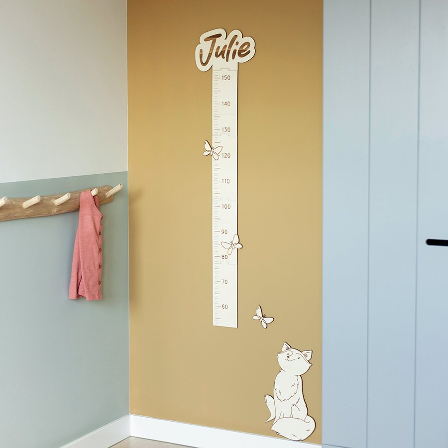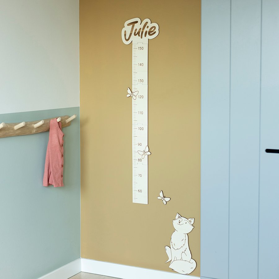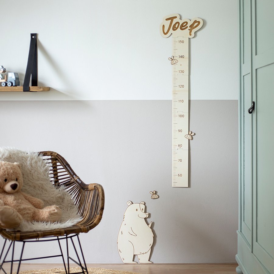 Verras de kleine met een gepersonaliseerde groeimeter voor op de baby- of kinderkamer. Ontdek ieder jaar hoeveel jouw kindje gegroeid is en noteer de datums. Een leuke traditie en daarnaast een mooie aankleding van de kinderkamer! Kies voor het thema Vos, Beer of Zee en laat één of meerdere namen boven de meter graveren, zodat broers of zussen mee kunnen doen.