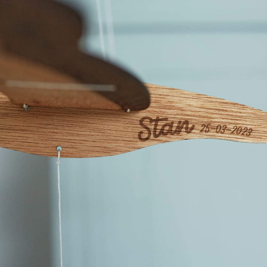 Dit prachtige item voor op de nieuwe babykamer kan gepersonaliseerd worden met naam en geboortedatum.