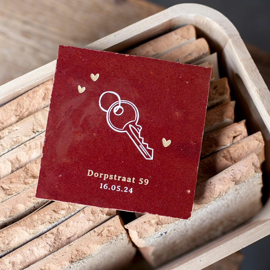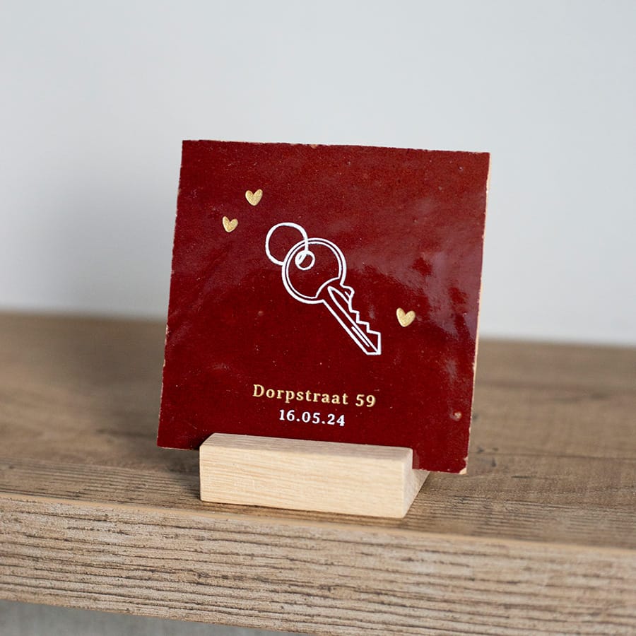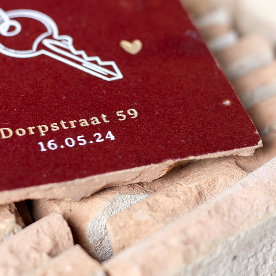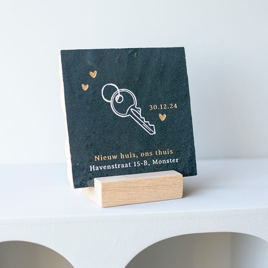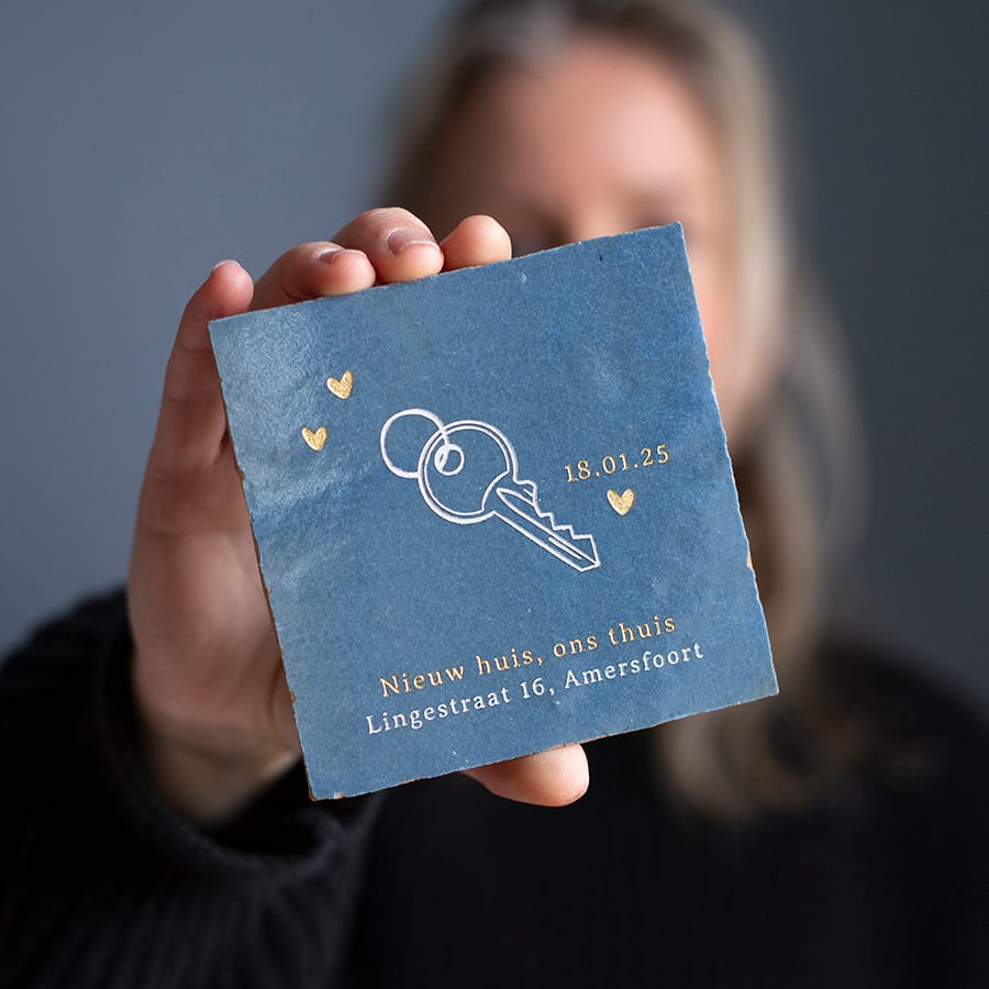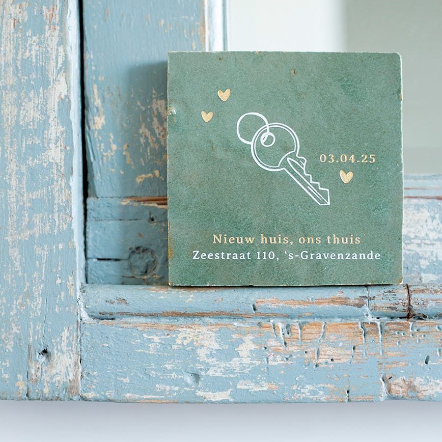 Wauw een nieuwe woning, misschien gaan jullie zelfs samenwonen! Een mooie mijlpaal. Koester mooie momenten en leg ze vast met een handgemaakt tegeltje. Stel jouw tegeltje naar wens samen.