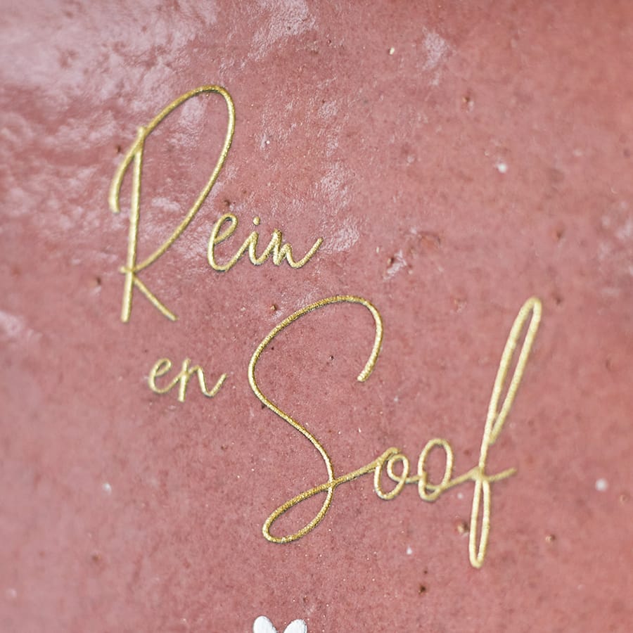 De laser zorgt voor een verdiepte gravering in de tegel, welke later met de hand wordt ingekleurd. Hierdoor kunnen we gelijk een vleugje goud toevoegen aan jouw tegel.